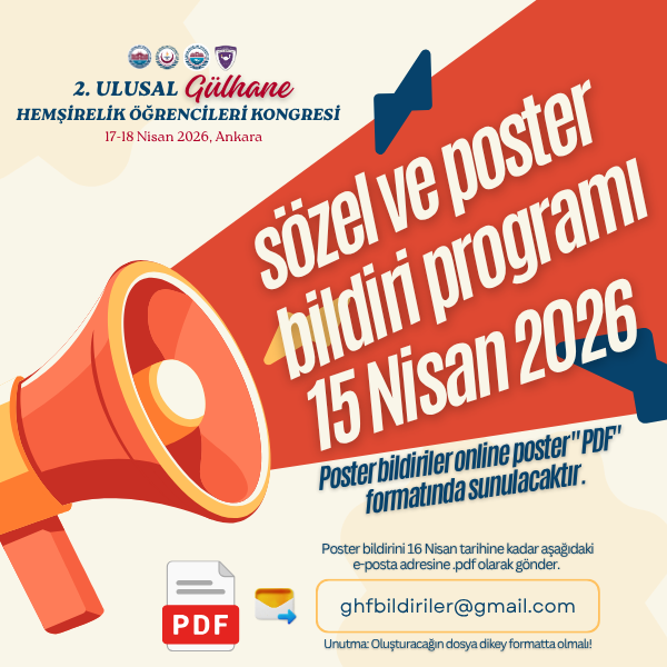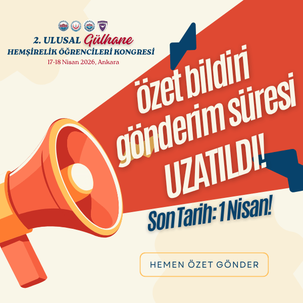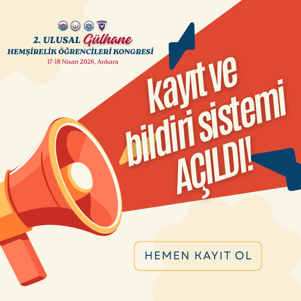 Sağlık Bilimleri Üniversitesi Gülhane Hemşirelik Fakültesi ve Hamidiye Hemşirelik Fakültesi iş birliği ile 17–18 Nisan 2026 tarihleri arasında 2. Ulusal Gülhane Hemşirelik Öğrencileri Kongresi düzenlenecektir. Hemşirelik öğrencilerinin bilgi, beceri ve vizyonlarını güçlendirmeye odaklanan ulusal düzeydeki kongremizde sizleri aramızda görmekten büyük bir mutluluk duyacağız.